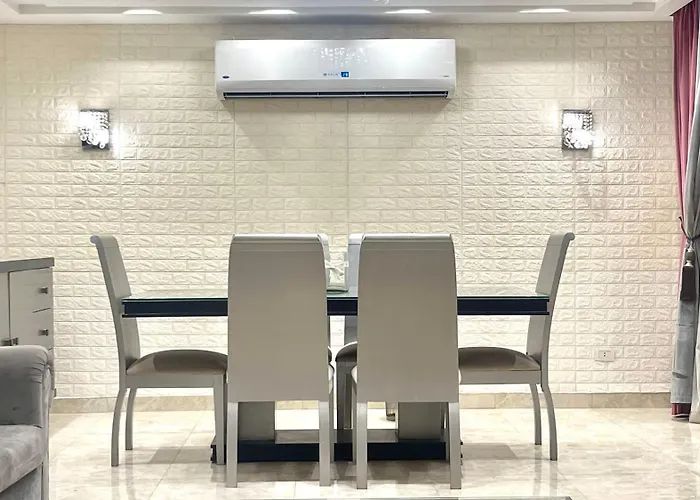 This apartment in Cairo is 1.9 km from the Lebanon Square and a 10-minute drive from the Ard El Lwaa. The Cairo Opera House is 2.4 km from the 175 m² apartment.